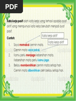 Kata kerja pasif adalah bentuk kata kerja yang subjeknya bersifat menderita. Kata kerja pasif pada umumnya mempunyai ciri ciri dengan. • pokok bunga itu telah disiram oleh aqilah. Bm tahun 4 unit 6 tatabahasa kata kerja pasif ms 39 silibus 2020. Layari dan langgan modul pembelajaran lengkap myguru di #purchasemyguru видео tahun 4 | bahasa melayu myguru merupakan portal pembelajaran yang dibina selaras dengan keperluan silibus pelajar tahun 1 hingga tingkatan 5. Video pendidikan untuk p&p tahun 4.^^ Pembentukan kata kerja dan penggunaan kalimat pasif sebagai berikut di bawah. Kata kerja pasif tahun 4. Kata kerja terbagi menjadi 2. Kuangkat, kuatasi, kuberikan, kupercepat, kupelajari, dan kupersilakan. Learn vocabulary, terms and more with flashcards, games and other study tools. Dimana materi pembelajaran ini akan diulas berdasarkan. Start studying kata kerja pasif.