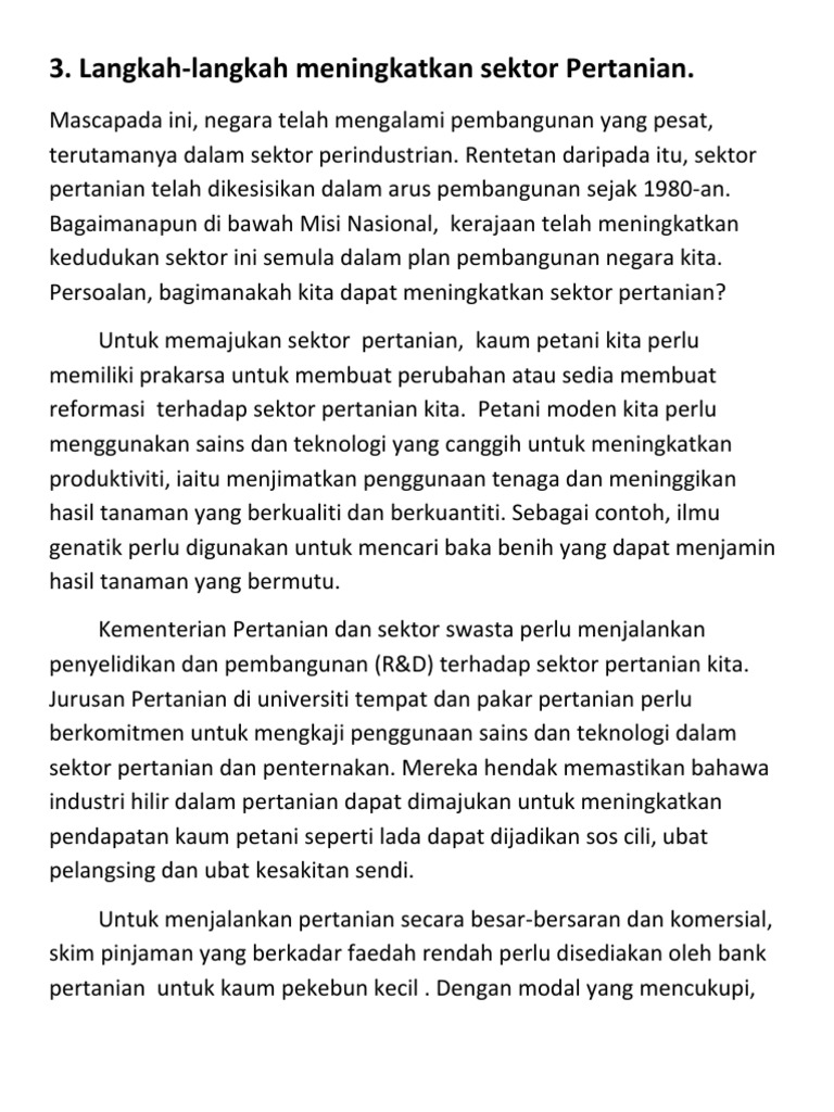 Related : Langkah Memajukan Sektor Pertanian / Pada masa yang sama, sektor pertanian boleh dimajukan dengan menggalakkan pengguna membeli produk tani tempatan..