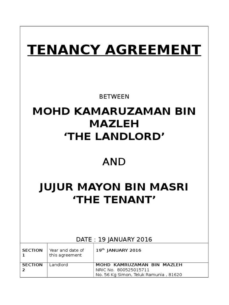 It covers tenancy agreements in malaysia, what they are, why you need it as a landlord, the tenancy process, deposit amounts, and sample tenancy agreement a tenancy agreement is a legal contract between the landlord and the tenant. The law of malaysia is mainly based on the common law legal system. This was a direct result of the colonisation of malaya, sarawak, and north borneo by britain between the early 19th century to 1960s. The landlord and tenant are free to include any terms into the tenancy agreement as long as it is legal and has been agreed upon by both parties. Get free advertising for property, free rent ads available here. How to calculate stamping fee in malaysia? Tenancy agreement 3 aug 2007 12:00 am. All conditions added to a tenancy agreement must comply with the law. In malaysia, there are no objections by the government in adding terms by both the parties. Early termination of tenancy agreement in malaysia. If family, are in laws included? Eviction of tenants is covered in a couple sections in the specific relief act. How about some points that it absolutely musta have?